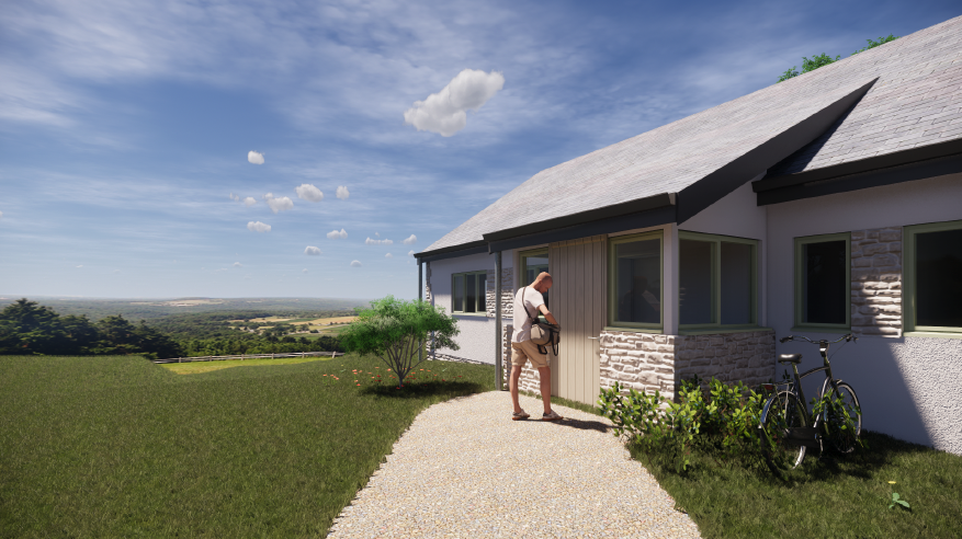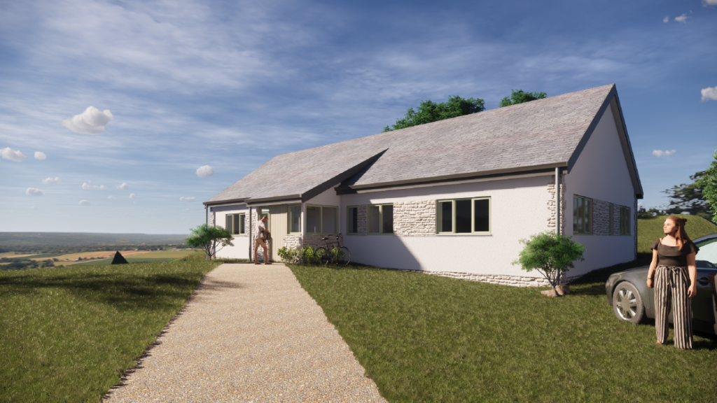 We have received planning permission for this exciting new house design just outside Exeter. A replacement dwelling, the home will be constructed using ICF insulated blocks to a high level of insulation and airtightness. The heating will be supplied via an air-source heat pump and use mechanical ventilation and heat recovery meaning it will reach near Passive energy standards. The broken form was designed to respond to views, light, and the prevailing winds, with large overhands offering shade and reducing glare.