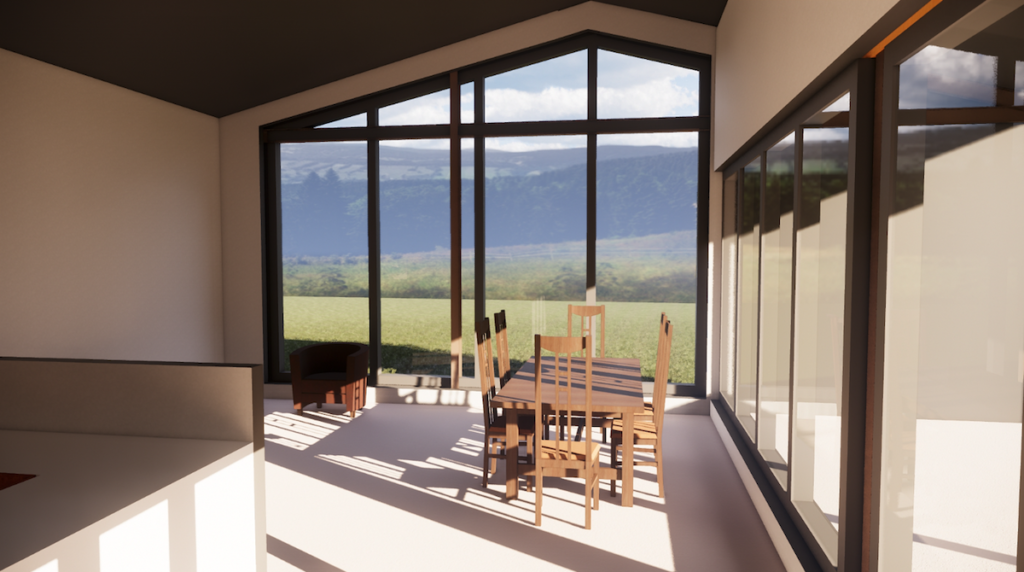 When we visit the clients site we use 3D scanning and point cloud technology to measure the property. We can then use these measurements to create the existing structure on Enscape.