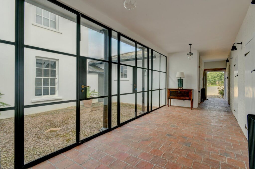 A Grade II listed cob-and-thatch home, transformed with a sensitively detailed oak-framed garden room and targeted sustainability upgrades. Lime plaster, original beams and traditional materials were retained, maintaining a strong dialogue with the building’s rural setting.