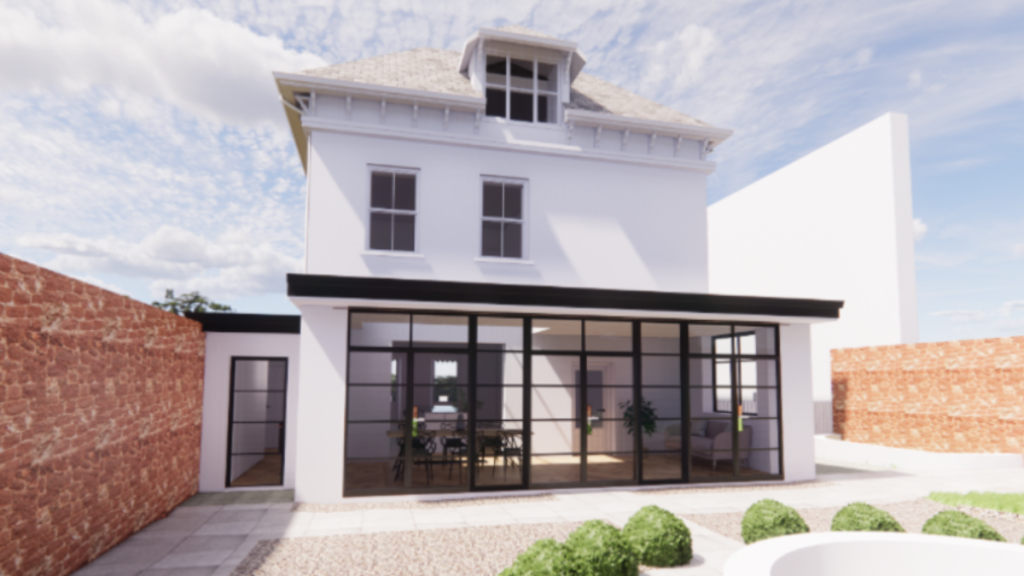 We have received planning permission for a replacement extension to a Grade II listed detached townhouse, situated on a private road in St Leonards. The replacement extension features crittal doors and a section of glass flooring to allow natural lighting into the basement.