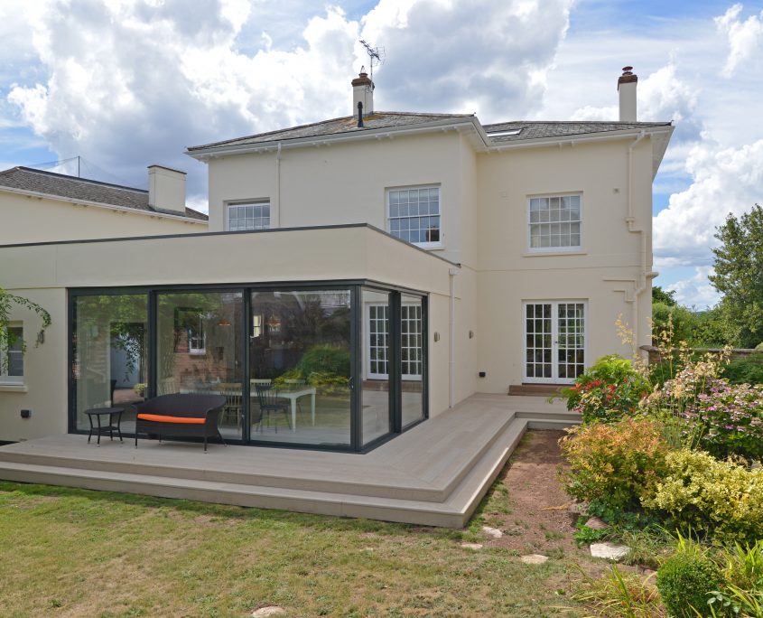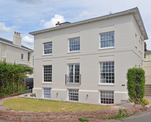 This project included the Extension, Alteration and Interiors for a large, detached, Georgian townhouse. The house is part of a Crescent of large detached homes around a private garden in the centre of the St Leonard’s Conservation Area in Exeter. This particular house was badly damaged during the Exeter Blitz and was extensively re-built. Although not Listed, the works were extremely sensitive due to the neighbouring and adjoining listed Buidlings and its setting.