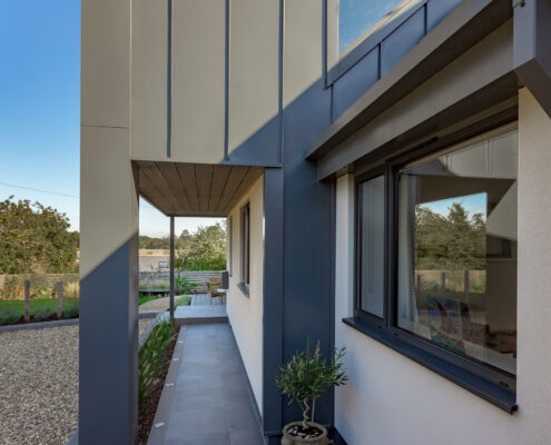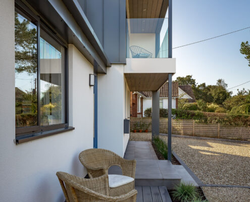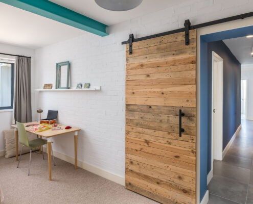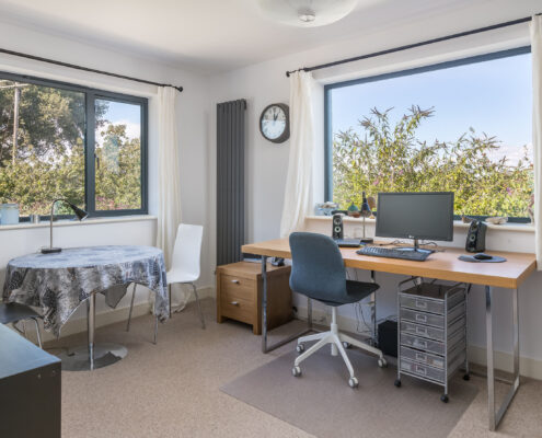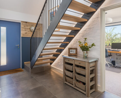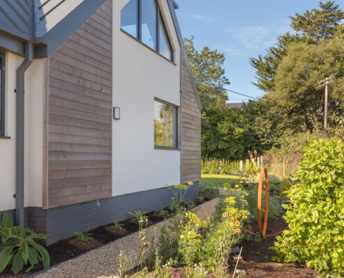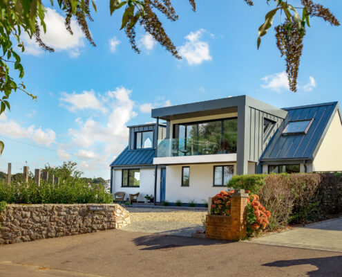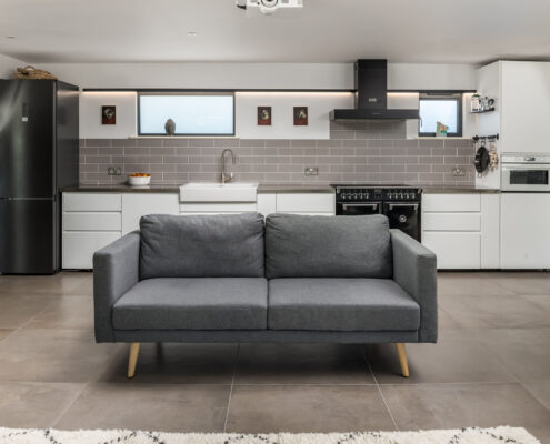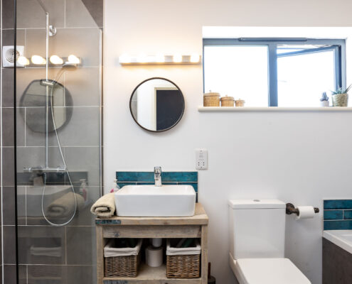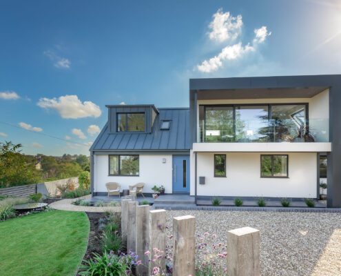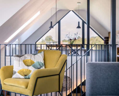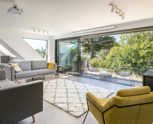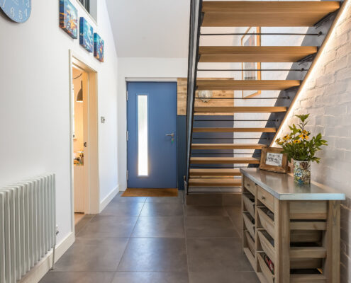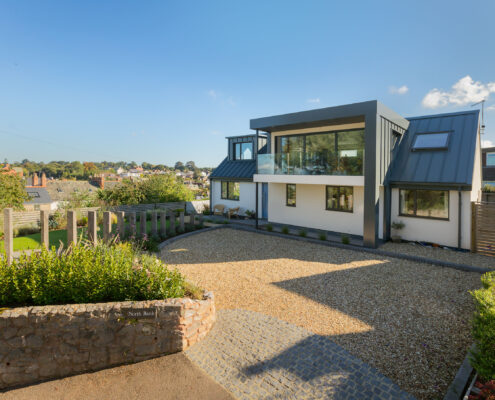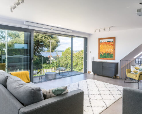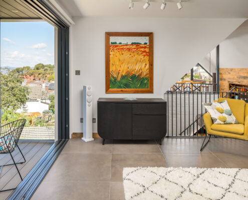 In this project, we modernised a house in Lympstone with the aim of completely transforming the upstairs space to capture the spectacular views and create a living environment that utilised the potential space. The end result is striking and incredibly successful. With bold angles, large windows and a seamless flow between different spaces, an open-plan kitchen/diner and living room were beautifully created.