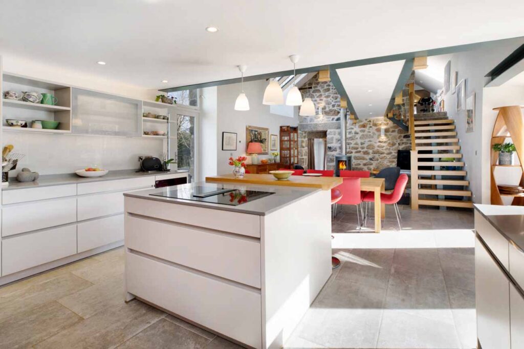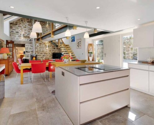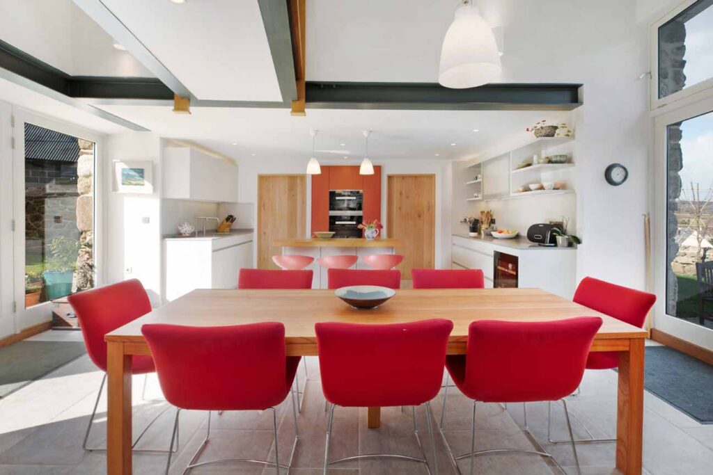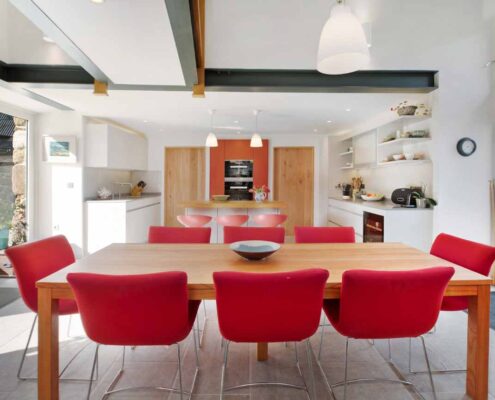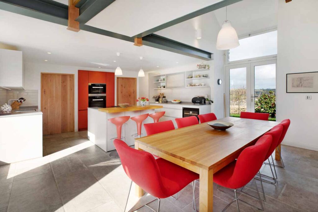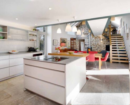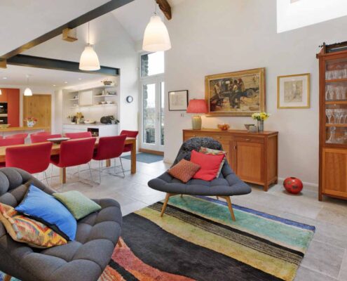 Our clients came to us seeking architects who would bring a contemporary approach and modern style in the barn’s internal refurbishment. Whilst they already had existing planning permission for conversion, our clients wanted to review the design and make a number of changes to it in order to improve the main space as an open-plan kitchen, dining and living area.