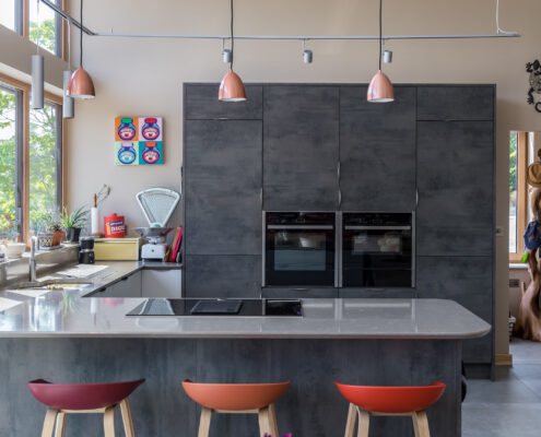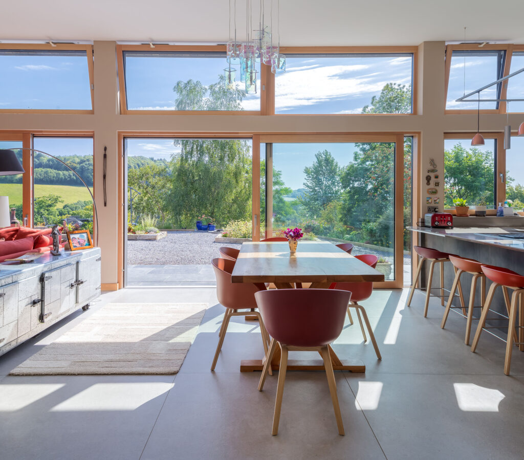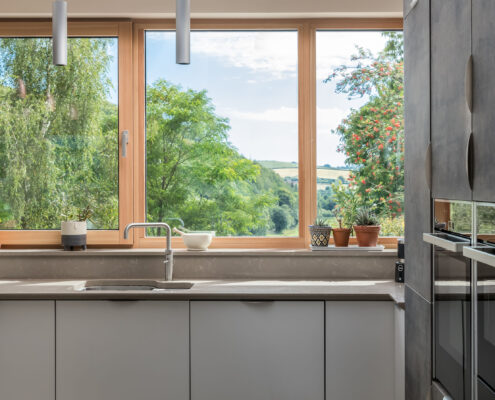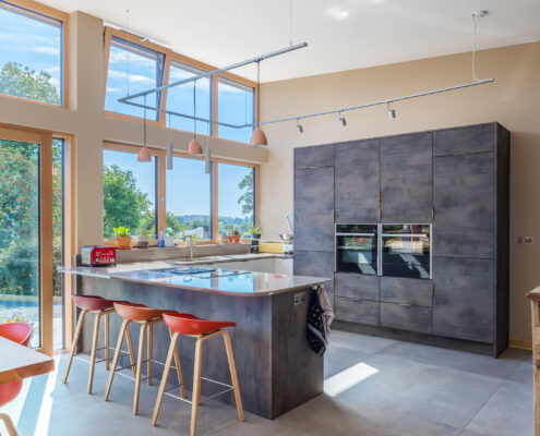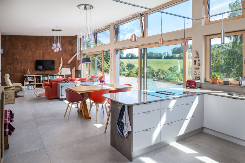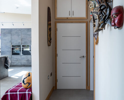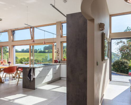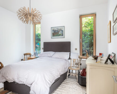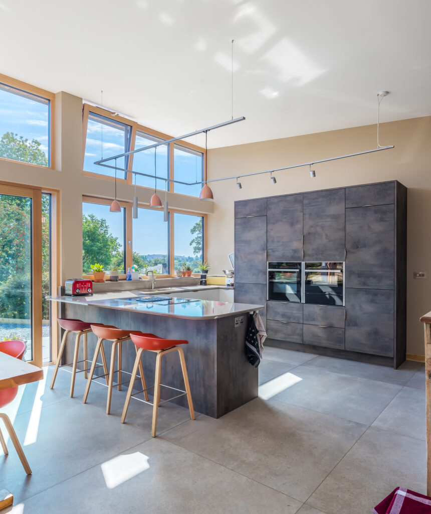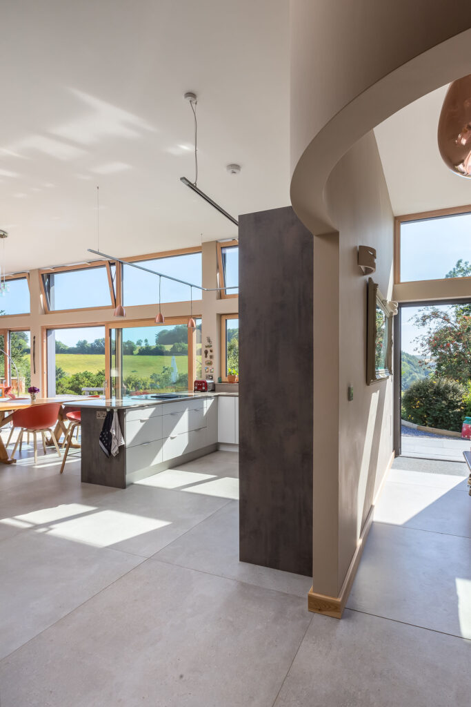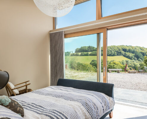 In this project, a timber-framed barn in Dartington was transformed, under Class Q legislation, into a beautiful new home. Key features of the property include large glass windows, allowing a great deal of light flow as well as enriching the interior space with a seamless connection between the outside and in. A curved wall also elevates the sophistication of the building by adding elegance to an otherwise cavernous space, in essence, ‘upgrading’ the barn-like feel of the home.