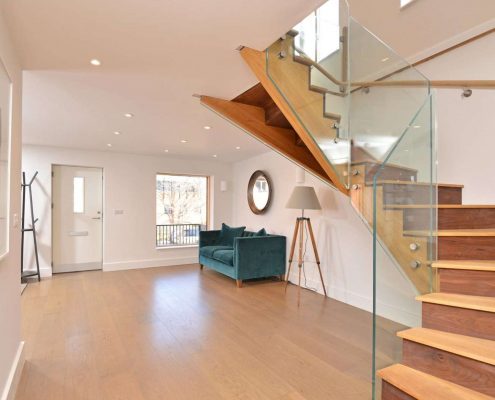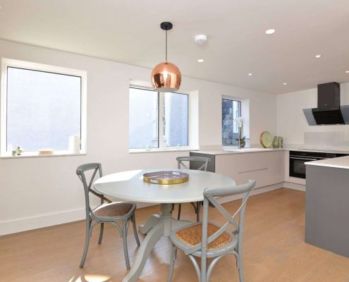 From start to finish this project was nothing but exciting. Based here on our doorstep, it was the opportunity to bring yet another Southernhay house back to life with a modern twist. The design certainty doesn’t lack personality and we had a lot of fun creating this facade. Courtyard House has been completed to a very high standard, offering spacious and well-planned accommodation in a contemporary style. Arranged over two floors, upon entering there is a large entrance lobby with space for a fine study/home office, 2 bedrooms (one with en-suite bathroom), a guest shower room and a utility room on the ground floor. The lobby is complemented by a superb modern solid oak staircase with walnut inserts and glass balustrade, that rises to a striking open plan living area with full height windows to the front, opening at the rear to a beautifully fitted kitchen with integrated appliances including a wine fridge. Accessed from the living space is a large master bedroom, with a generous en-suite wet room.