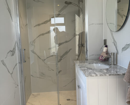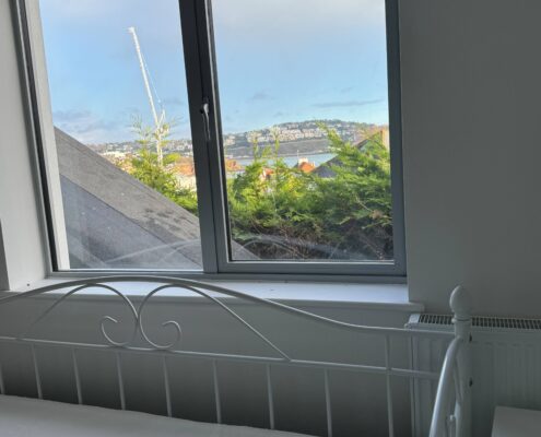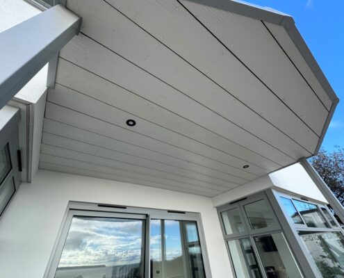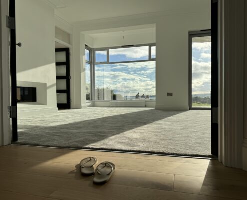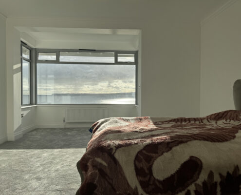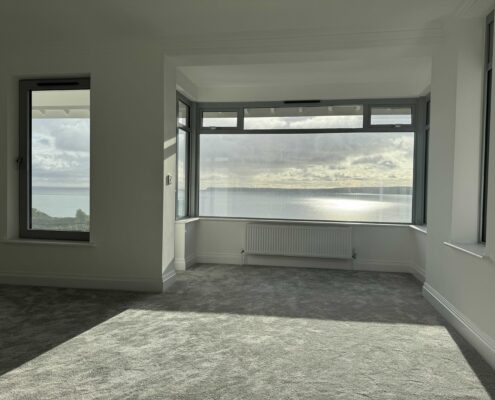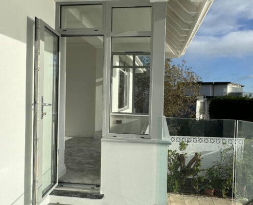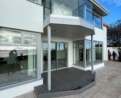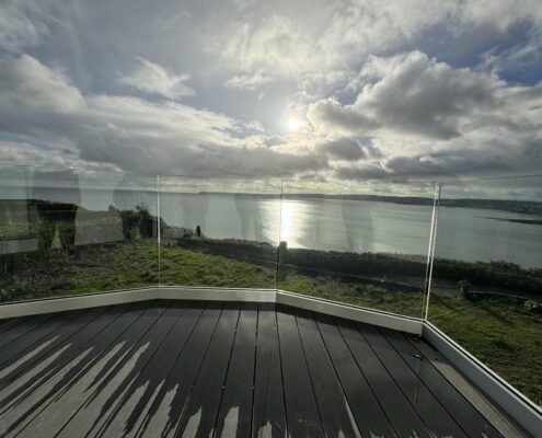 • New balcony and glass balustrade with views out to sea