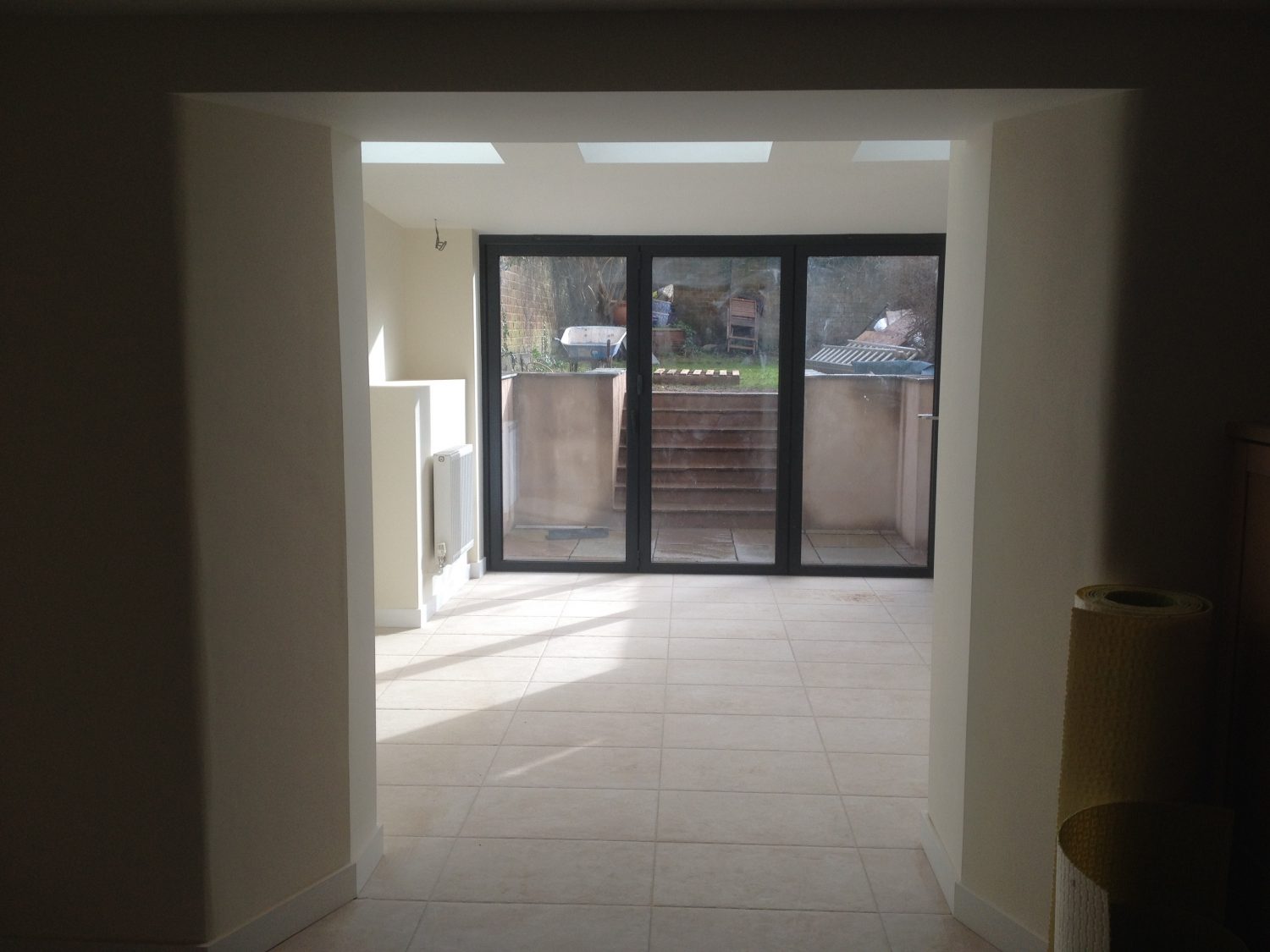 This extension replaces a badly built extension to create a well insulated, lighter and brighter space, that links to the garden at a higher level. The first floor extension houses a new office, which has a stair straight out to the garden. In the basement the existing kitchen was extended by inserting large steels forming a large connecting opening to the new dining room. The result is a wonderful family room that makes the most of the small garden and creates a multipurpose space perfect for parties and also practical for day to day life.