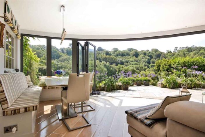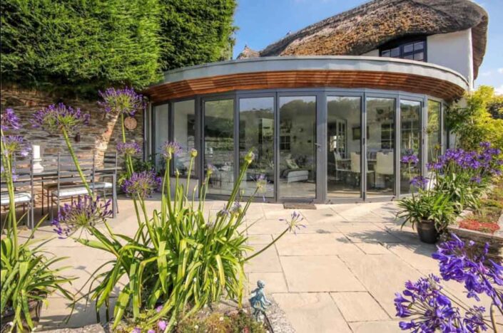 This beautiful Listed Cottage Extension in the South Hams was achieved through careful consultation with the planning department and conservation officer. An assessment of the age and significance of different parts of the house ascertained that one end had been re-built and extended in the 1960’s. This meant that those parts of the house held lower historic significance and provided the perfect position for the new contemporary garden room extension. The extension is designed to create a strong link to the landscape, with the brief of being able to feel like you are sitting in the garden throughout the year.