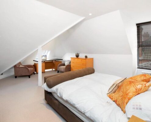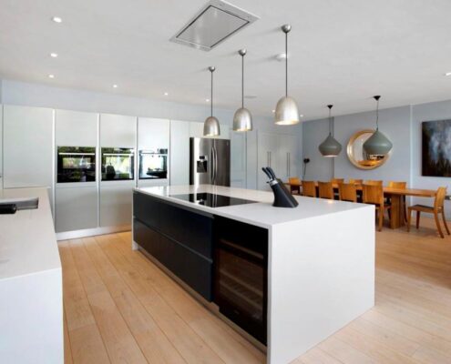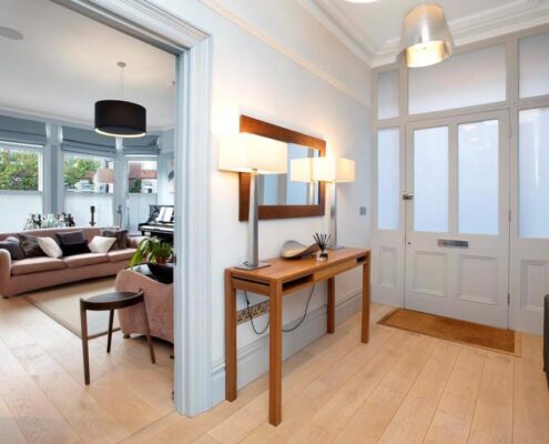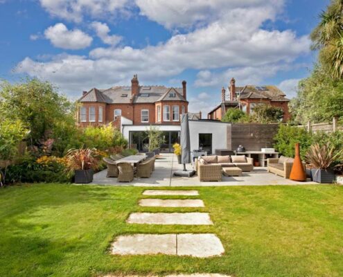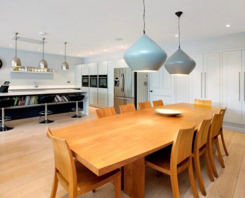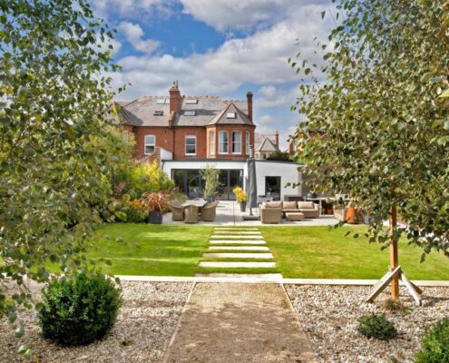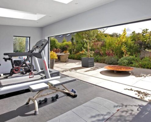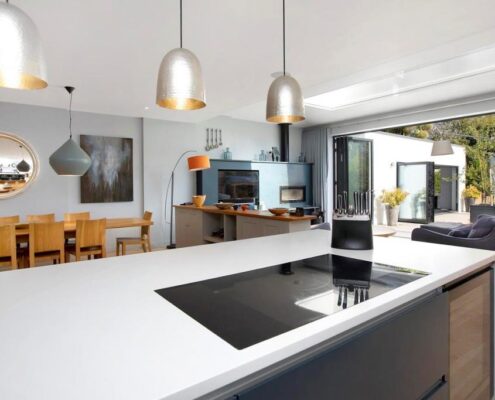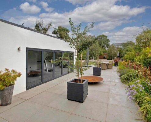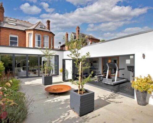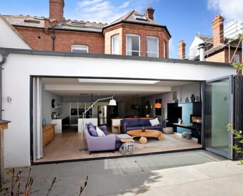 The extension was designed as a deliberately contemporary addition using high-quality aluminum doors and a flush roof light. The level of quality and detail was illustrated in the images below that showed good quality, contemporary, flat-roofed extensions.