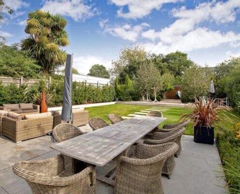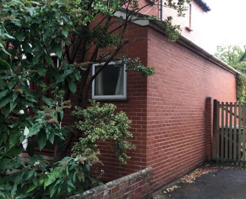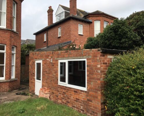 The side wall of the extension and walls of the garage were built using reclaimed brick to tie them into the existing house.
