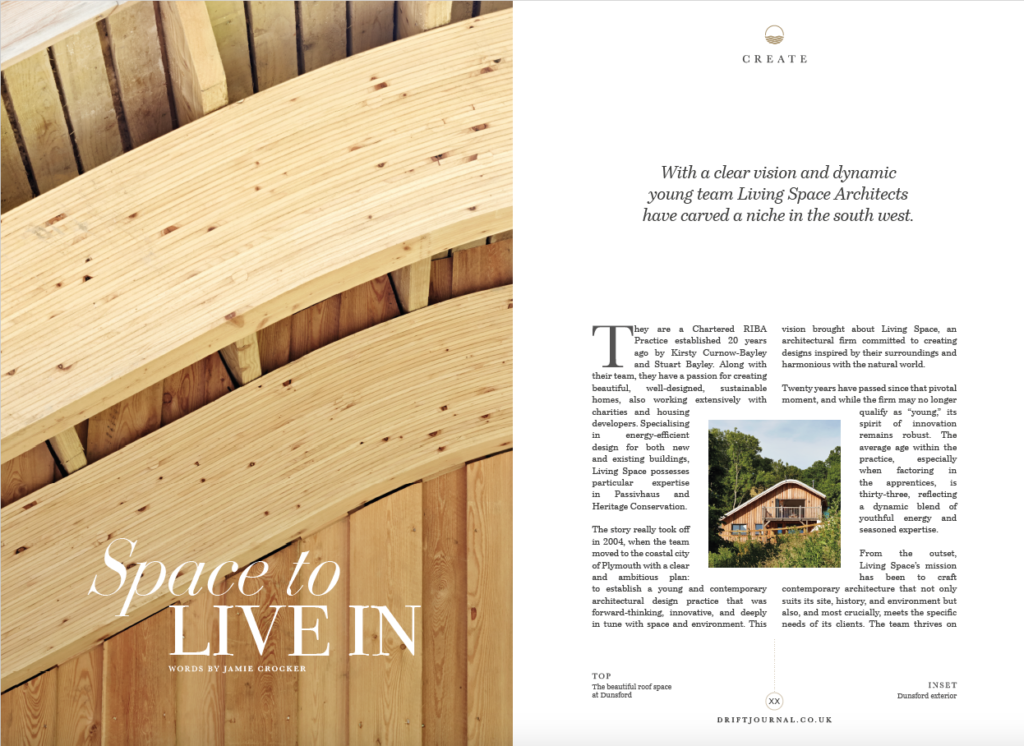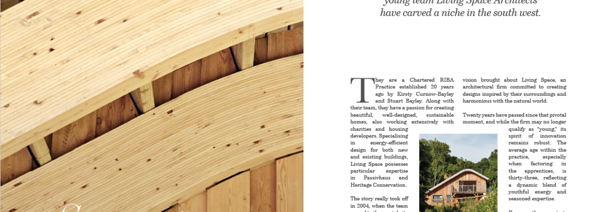 Living Space are a Chartered RIBA Practice based in Exeter, established 20 years ago by Kirsty Curnow-Bayley and Stuart Bayley. Along with their team, they have a passion for creating beautiful, well-designed, sustainable homes, also working extensively with charities and housing developers. Specialising in energy-efficient design for both new and existing buildings, Living Space possesses particular expertise in Passivhaus and Heritage Conservation.